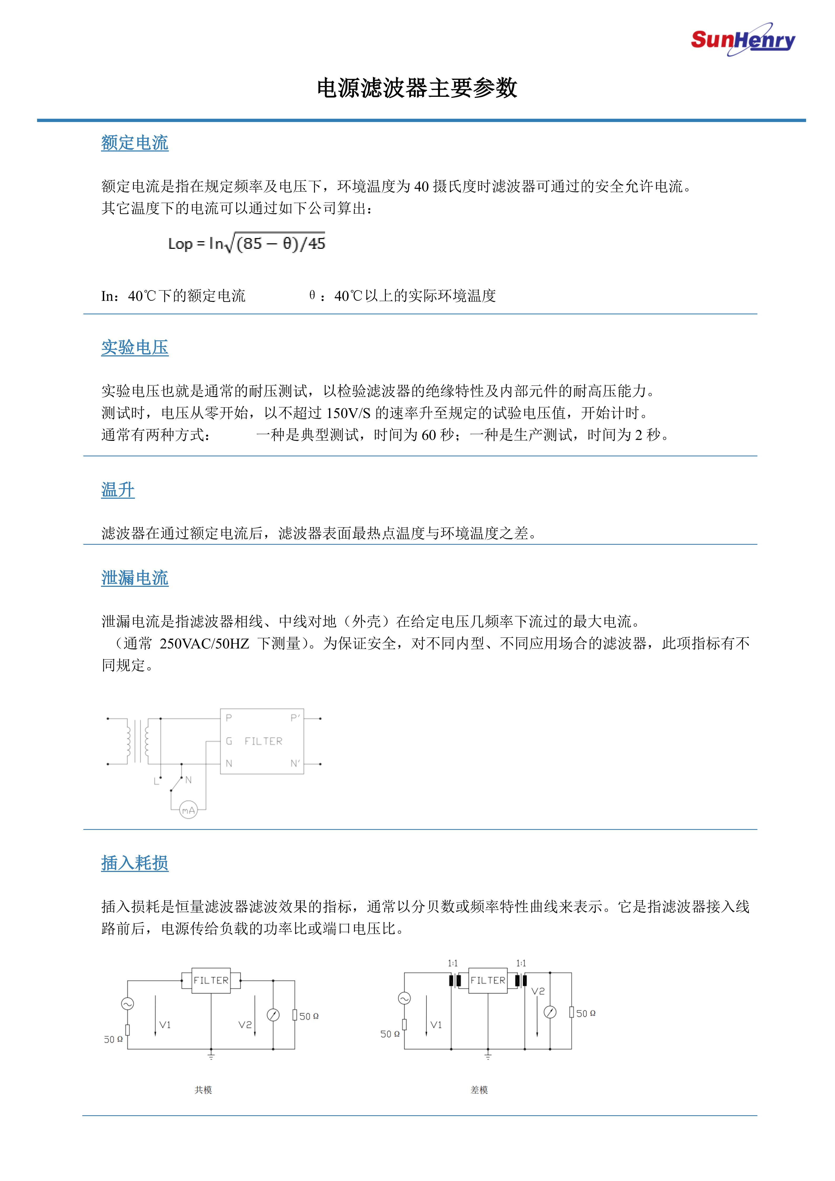 滤波器主要技术参数
