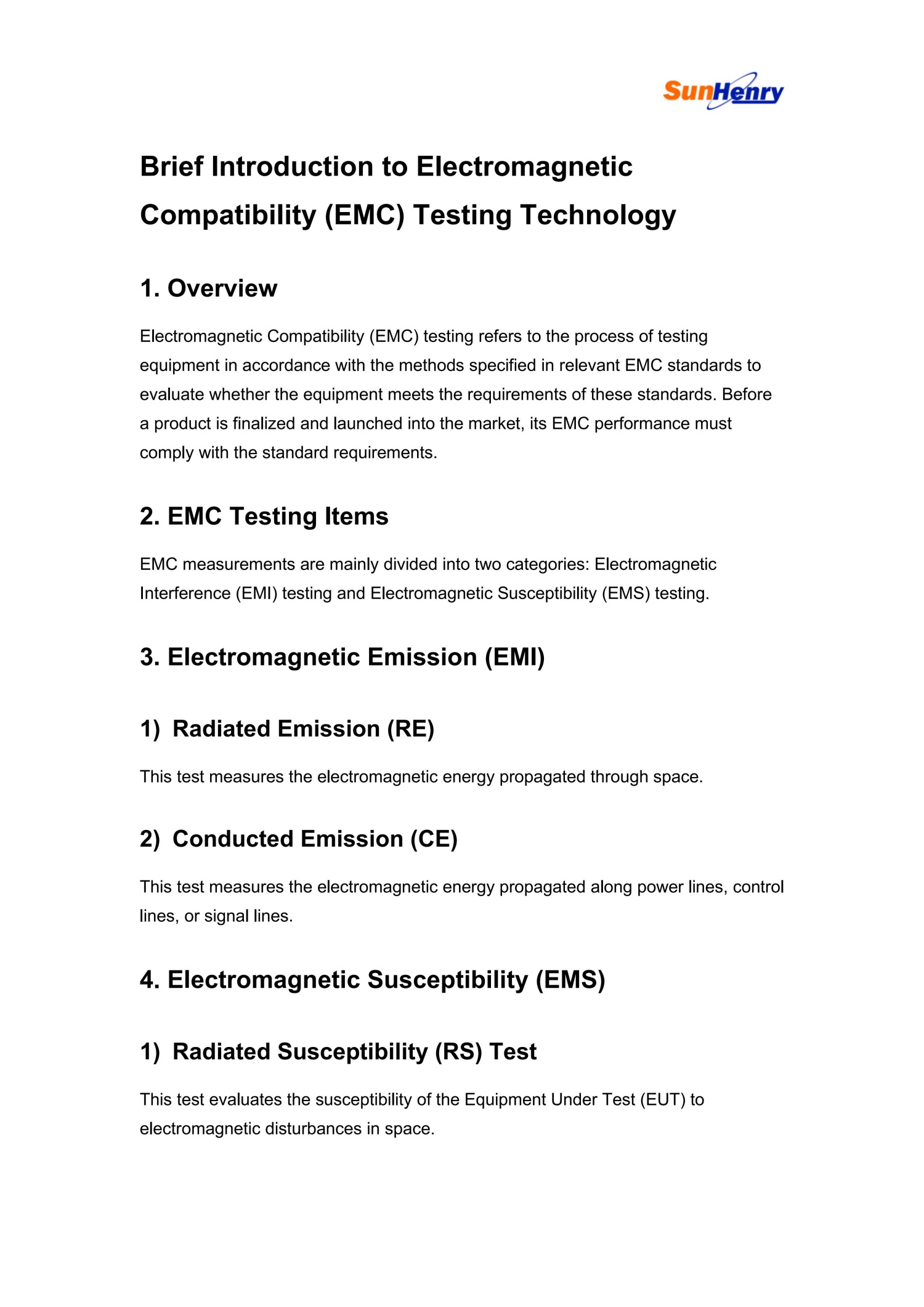 Brief Introduction to Electromagnetic Compatibility (EMC) Testing Technology