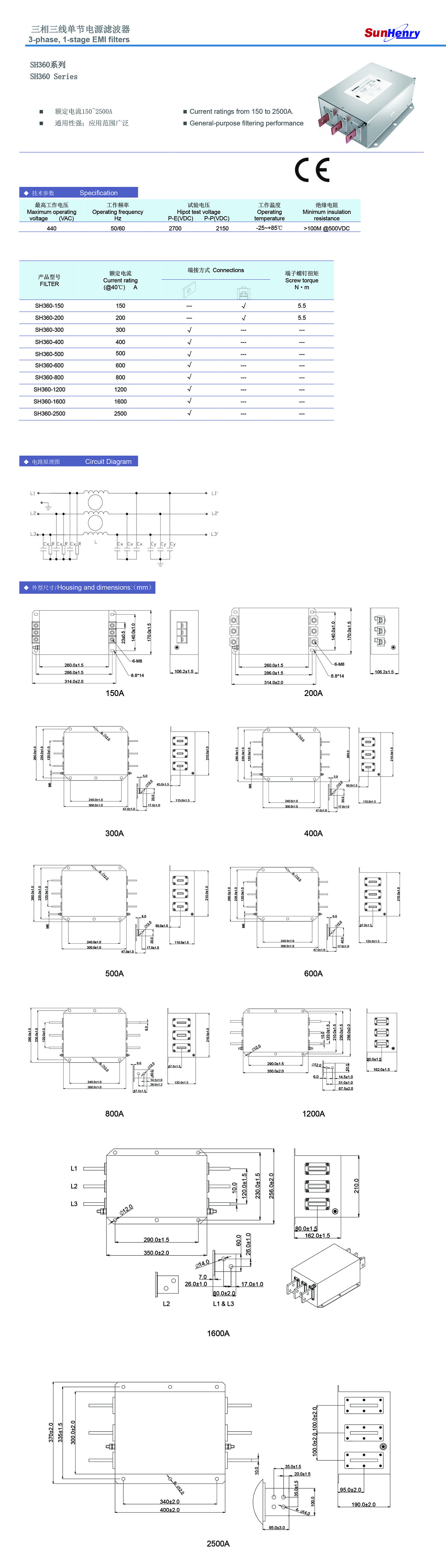 产品中心 > 三相三线滤波器 > 三相三线 SH360 大电流