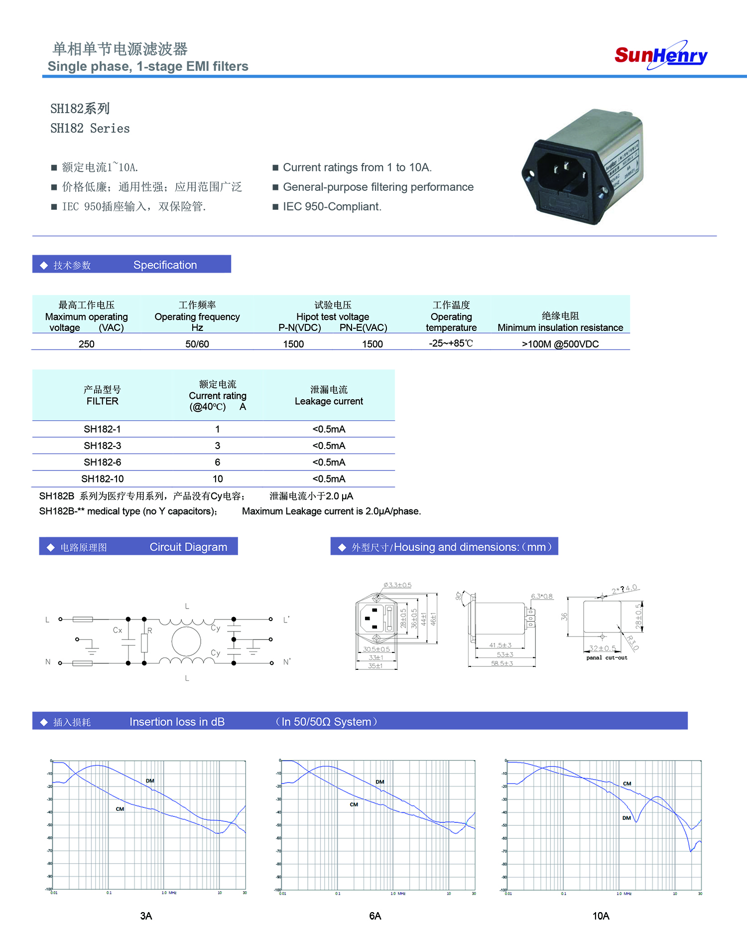 产品中心 > IEC插座/插针型滤波器 > IEC插座+双保险管 SH182
