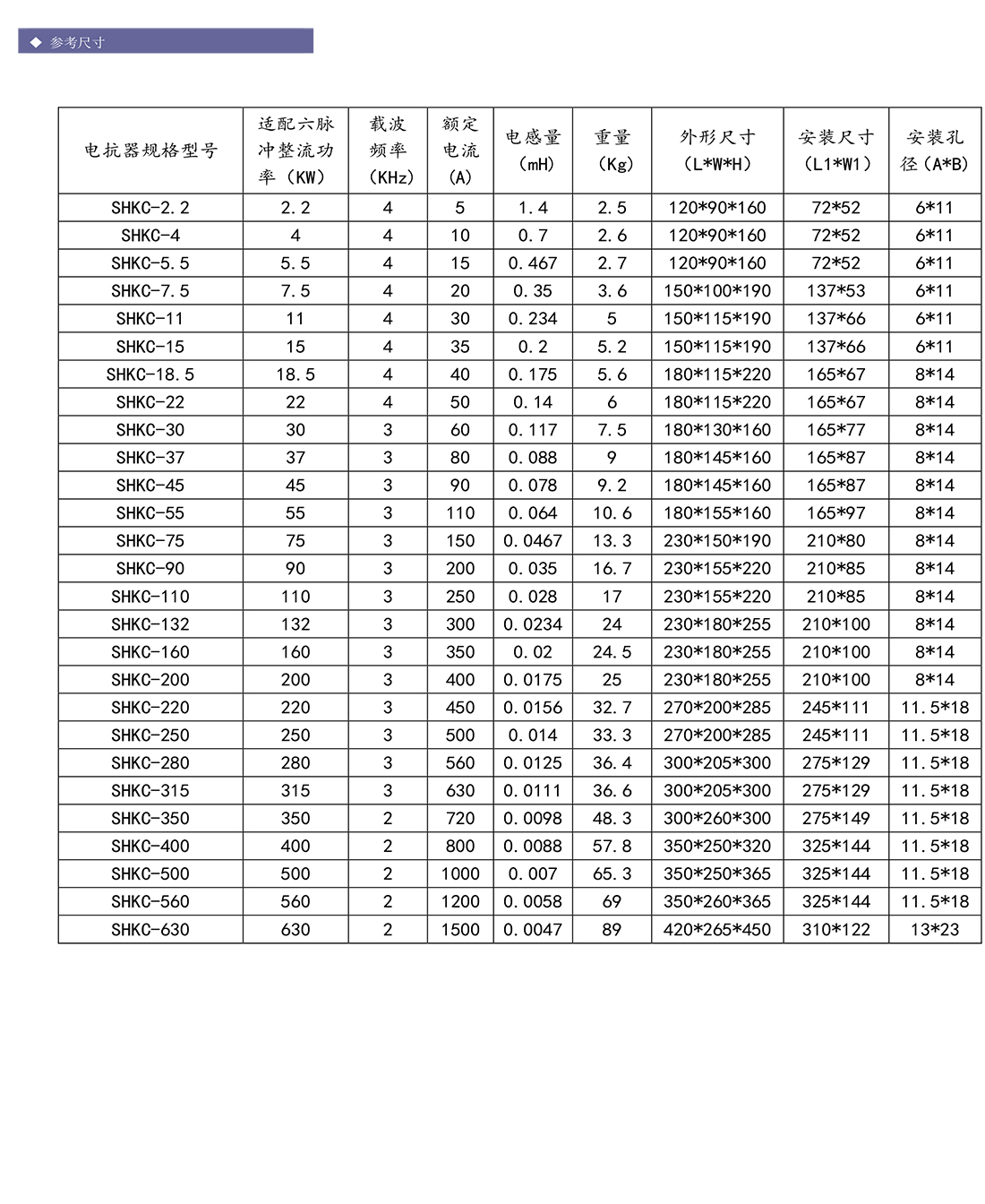 进线电抗器SHKR 系列