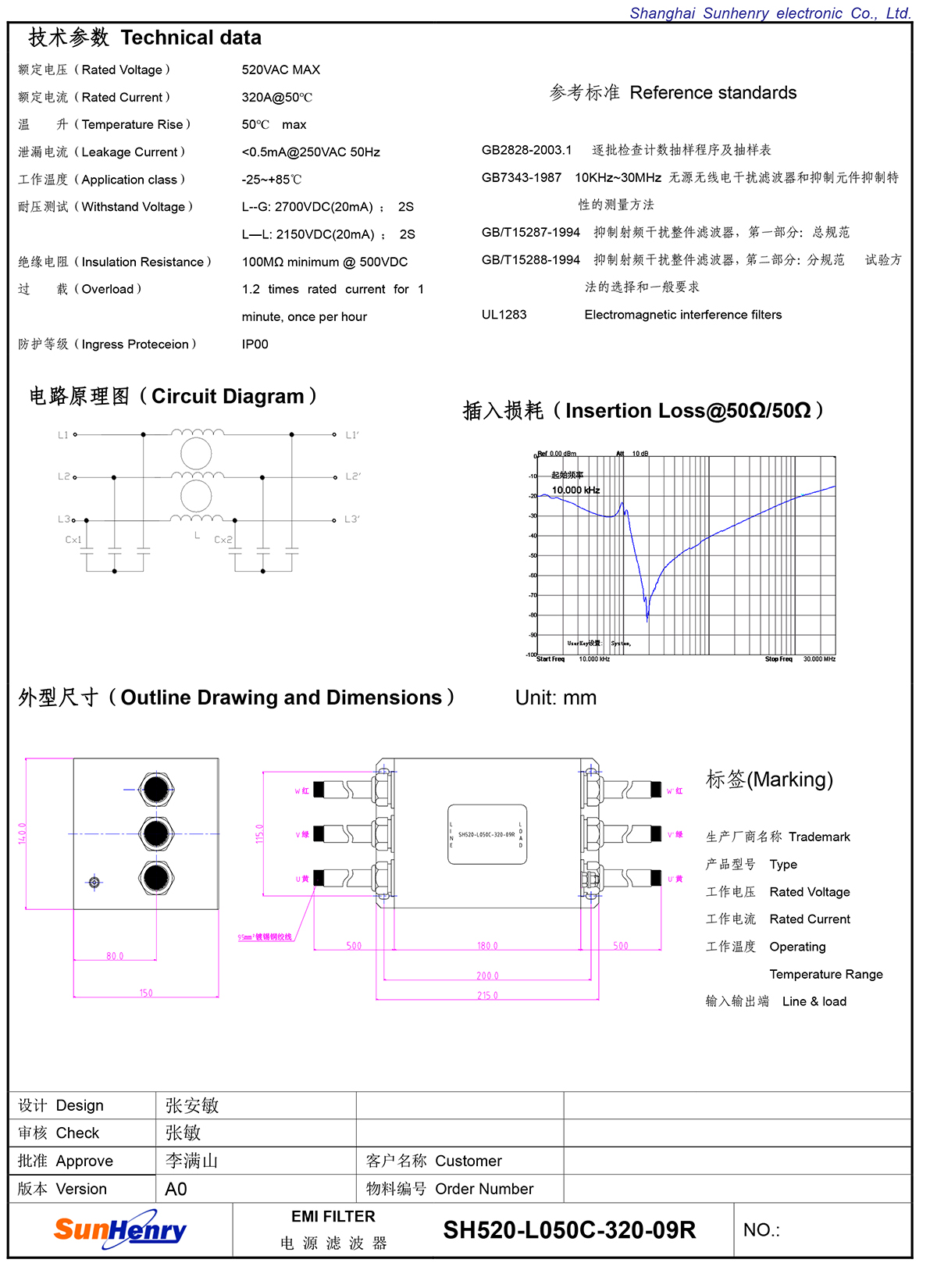 产品中心 > 定制滤波器 > 环保电源滤波器 SH520-L050C-320-09R